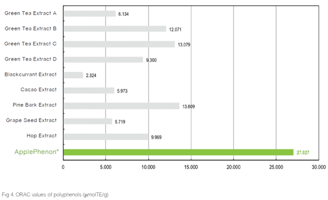 The ORAC (Oxygen Radical Absorbance Capacity) value of ApplePhenon® is extremely high in comparison to other polyphenol products.